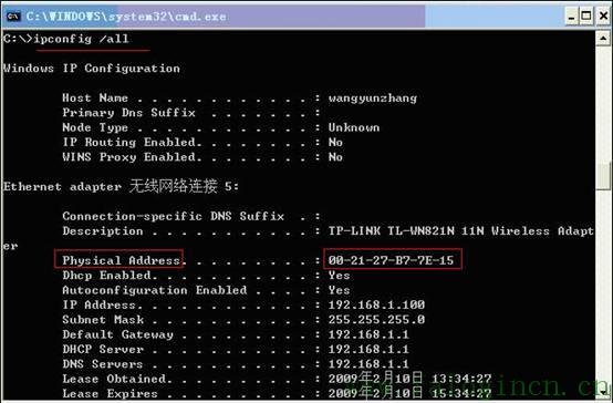 無線MAC地址過濾功能通過MAC地址允許或拒絕無線客戶端接入無線網絡,有效控制無線客戶端的接入權限。無線MAC過濾可以讓無線網絡獲得較高的安全性。每一個網絡設備,不論是有線網卡還是無線網卡,都有一個唯一的標識叫做MAC地址(媒體訪問控制地址)。網卡的MAC地址可以用這個辦法獲得:打開命令行窗口,輸入ipconfig /all,然后出現很多信息,其中物理地址(Physical Address)就是MAC地址。