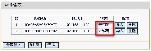 2、通過“ARP映射表”,導入條目,進行綁定。