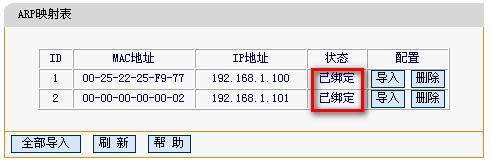 導入成功以后,即已完成IP與MAC綁定的設置。如下: