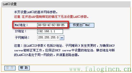 怎么知道路由器的MAC地址是多少呢?可以打開路由器的管理界面,進入“網絡參數”->“LAN口設置”: