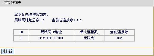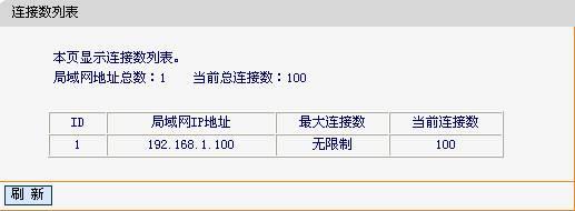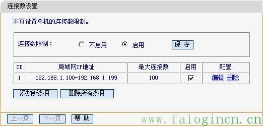 條目添加成功后,可以看到,已經對192.168.1.100的計算機限制了最大連接數為100,并且該條目處于“啟用”的狀態。若該對該條目進行編輯、刪除,請點擊對應的按鈕就可以進行相應的操作了。