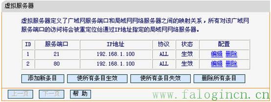 通常WEB服務器使用80端口,FTP使用21端口進行通信,在路由器上進行正確的端口映射后,外網就能正確訪問搭建好的服務器了。