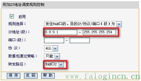 ②、指定訪問所有網(wǎng)段的所有數(shù)據(jù)由WAN2口轉(zhuǎn)發(fā):