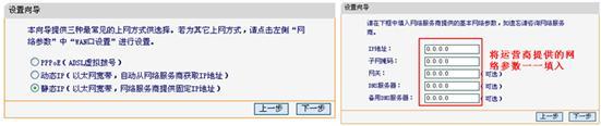 靜態(tài)IP要輸入運營商給您的IP地址、網(wǎng)關等參數(shù)