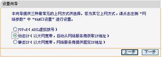 ③選擇正確的上網(wǎng)方式(常見上網(wǎng)方式有PPPOE、動態(tài)IP地址、靜態(tài)IP地址三種,請根據(jù)下面的描述選擇對應的上網(wǎng)方式);