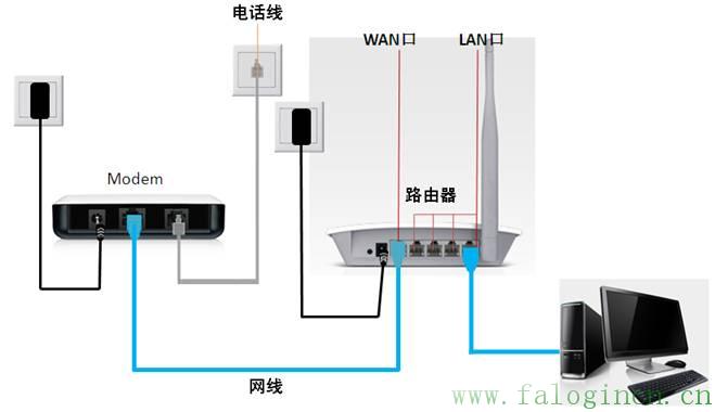 在沒有路由器之前,我們是通過電腦直接連接寬帶來上網(wǎng)的,那么現(xiàn)在要使用路由器共享寬帶上網(wǎng),當然首先要用路由器來直接連接寬帶了。因此我們要做的第一步工作就是連接線路,把前端寬帶線連到路由器(WAN口)上,然后把電腦也連接到路由器上(LAN口),如下圖: