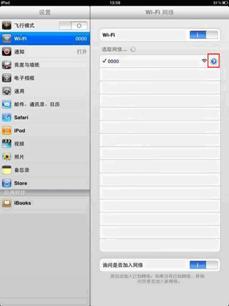 l 打開iPad主界面,選擇"設置"菜單后點擊Wi-Fi進入Wi-Fi網(wǎng)絡界面。然后開啟Wi-Fi開關并在無線網(wǎng)絡列表中單擊您自己路由器的無線信號。