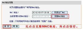 l 部分服務商可能綁定了MAC地址,請使用之前單機可以正常上網(wǎng)的電腦,有線登錄到路由器的管理界面,選擇"網(wǎng)絡參數(shù)--MAC地址克隆",點擊"克隆MAC地址",然后保存,并根據(jù)提示重啟路由器,再觀察路由器是否可以獲取到IP地址;