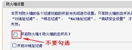 l 檢查您的路由器中是否設置了IP地址過濾或者MAC過濾,在路由器的管理界面中點擊"安全設置--防火墻設置"或"上網(wǎng)控制",不勾選"開啟防火墻"或"開啟上網(wǎng)控制"然后保存,再進行嘗試打開網(wǎng)頁;