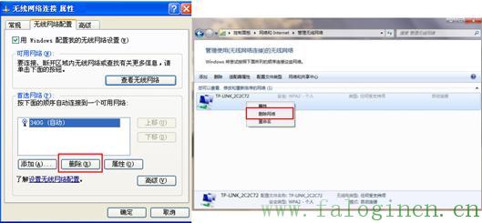 方法如下:Windows XP系統(tǒng)點擊"無線連接狀態(tài)屬性--無線網(wǎng)絡配置--首選網(wǎng)絡",( Windows 7和Vista系統(tǒng)進入方法為"控制面板--網(wǎng)絡和Internet--管理無線網(wǎng)絡")對相應無線配置文件進行刪除,然后重新掃描信號并連接。