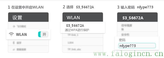 7、在無線客戶端上通過搜索WiFi網絡,找到名為S3_56672A的“網絡名稱”,選擇連接后,在提示對話框輸入“網絡密碼”rdype773,即可實現共享上網。