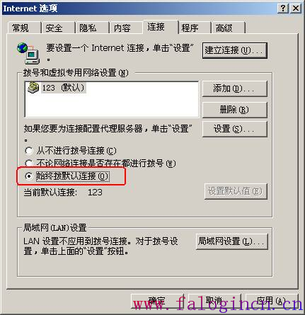 在某些地區,ISP服務商在為用戶安裝寬帶時,安裝人員為了方便用戶上網,通常習慣將“Internet選項”--“連接”里設置成“始終撥默認連接”(如圖1所示),以便讓用戶一打開IE瀏覽器輸入網址后就自動撥號不用手動連接。但是用戶在增加了其他電腦后,購買了路由器進行共享上網,按照說明書上安裝好路由器后,在瀏覽器中輸入http://192.168.1.1時卻進入不了路由器管理界面,而是彈出如圖2所示的撥號連接對話框。這時只需要將之前設置的“始終撥默認連接”改為“從不進行撥號連接”,問題即可得到解決。