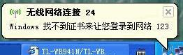無線連接時,無線網卡提示"windows找不到證書來讓您登陸到網絡"。如下圖:
