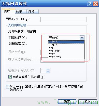 無線網絡屬性”中選擇“關聯”,在“網絡驗證”中查看一下您的系統是否支持路由器中設定的加密方式。