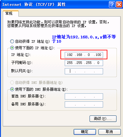 控制面板--網(wǎng)絡(luò)連接--本地連接右鍵屬性,雙擊Internet協(xié)議(TCP/IP),確認IP地址與打印服務器在同一網(wǎng)段(我司打印服務器的默認IP為192.168.0.10)。