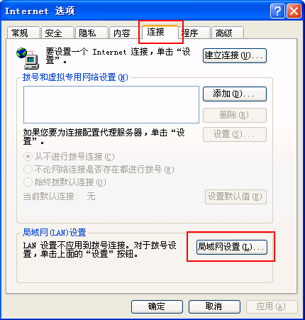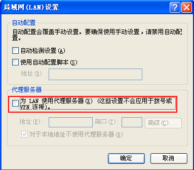 3、檢查瀏覽器是否設(shè)置了代理。點擊瀏覽器的菜單工具--Internet選項--連接--局域網(wǎng)設(shè)置,不要勾選為LAN使用代理服務器。