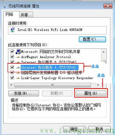 選擇“Internet協議版本4(TCP/IPv4)”,點擊“屬性”。