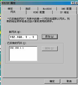 請依圖所示,在“IP地址”頁填入IP地址192.168.1.2,子網掩碼255.255.255.0;“網關”頁填入網關192.168.1.1。點擊該頁面的“確定”及“網絡屬性”頁面的“確定”,依提示重啟PC。