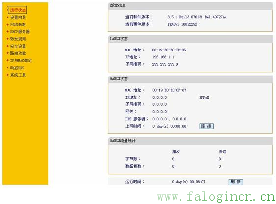 注意:當您輸入完上網口令后,密碼框里的口令長度與您輸入的實際位數可能不符,不必擔心,這是路由器內置的密碼保護機制,只要您確認所填寫的密碼是正確的即可,路由器已經保存了設置,然后回到路由器的運行狀態中。