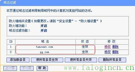 確認防火墻、 IP過濾、域名過濾都開啟著。我們再看域名過濾的具體設置: