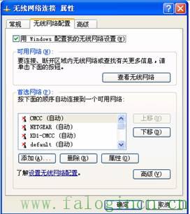 右鍵點擊“無線網絡連接”—“屬性”-“無線網絡配置”—“添加”: