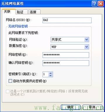 需要將在無線路由器上已經設置好的SSID號,開啟安全設置,安全類型,安全選項,密碼在此進行相對應的設置,設置好與路由器上相同的加密信息后,點擊“確定”:
